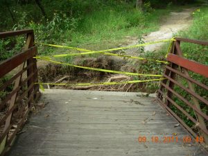 In September 2011, the remnants of Tropical Storm Lee ravaged Fairfax County, and some areas within the Park Authority’s stream valley trail network were washed away. “Significant damage remains,” said Cronauer. She said the damage was so extensive in some places that the short term goal of the Park Operations Division was to simply make the trails functional again rather than restore them to their original condition. In certain places the damage was severe. It will take a little longer to restore functionality in those areas. “Long Branch Stream Valley was hit hard, specifically the bridge. A bridge needs to be replaced and plans are now in place to move that project forward in the next 12 to 18 months. Part of the trail along Difficult Run has also been severely damaged. Parks Ops has done a tremendous amount of work and replaced tons of stone,” Cronauer said. Repairs to trails throughout the county continue.