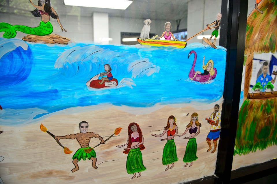 Beach scene ← Previous Next → Providence staff were painted in a beach scene for Colón’s summer mural.