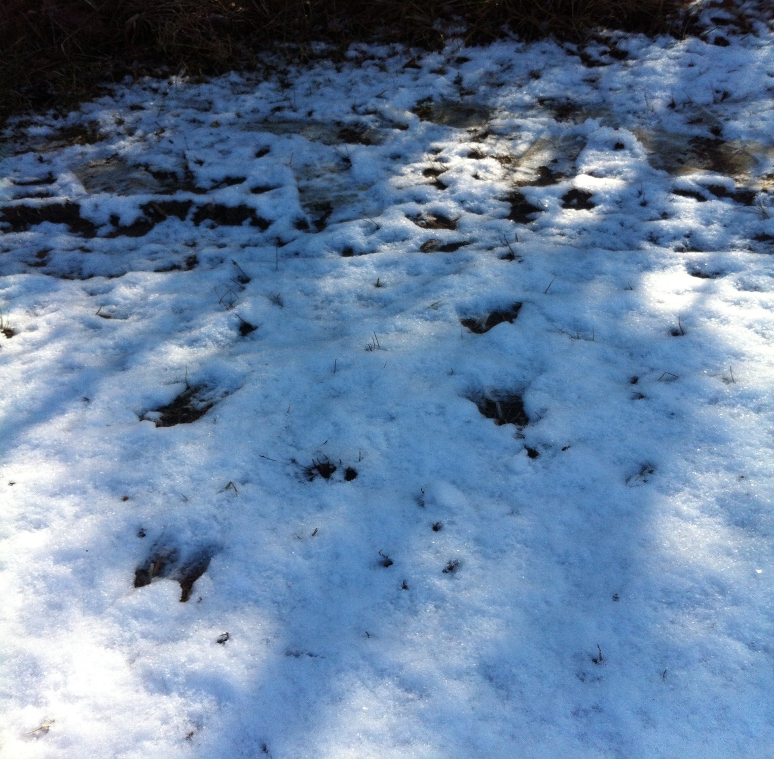 A walk through the woods after a snowfall can also provide clues as to which wintering mammals are active this time of year. Along the flood-plain, footprints in the snow-flecked ice reveal the presence of a pair of otters. Somewhere along the riverbank, their den, a maze of tunnels burrowed into the hillside, will soon house baby pups. For now, the path of the footprints suggest the otters have been popping in and out of air holes cut into the ice; perhaps evidence of playful courting before the female accepts the male as her mate.