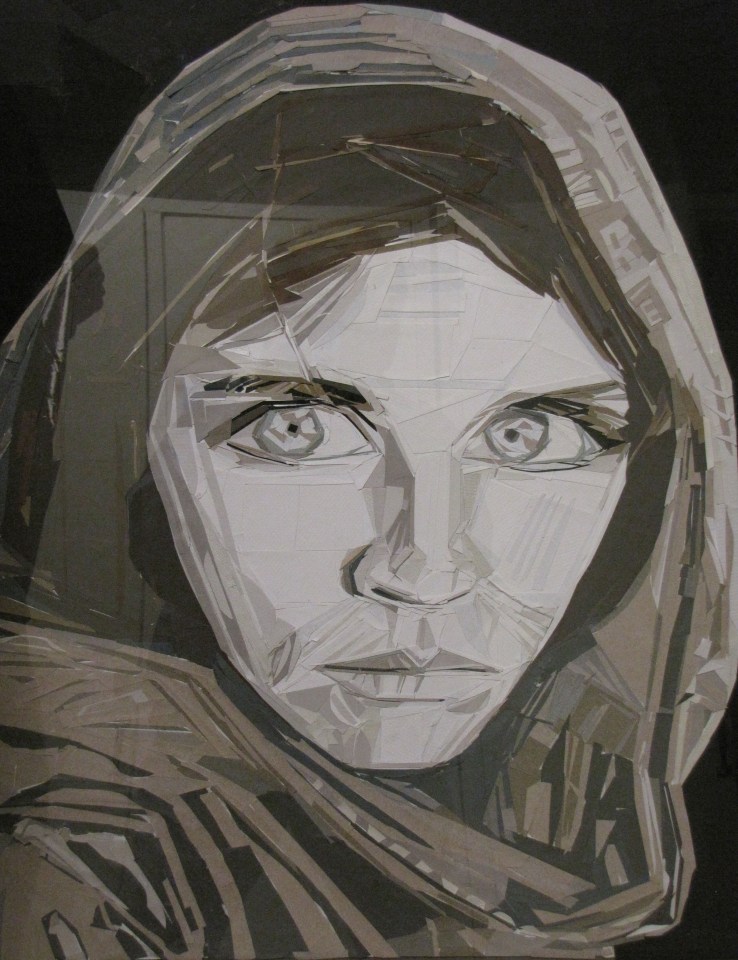 Afghani Girl Next → Thigpen recreated the famous Afghani Girl from the cover of 1985 National Geographic using small pieces of cut paper.