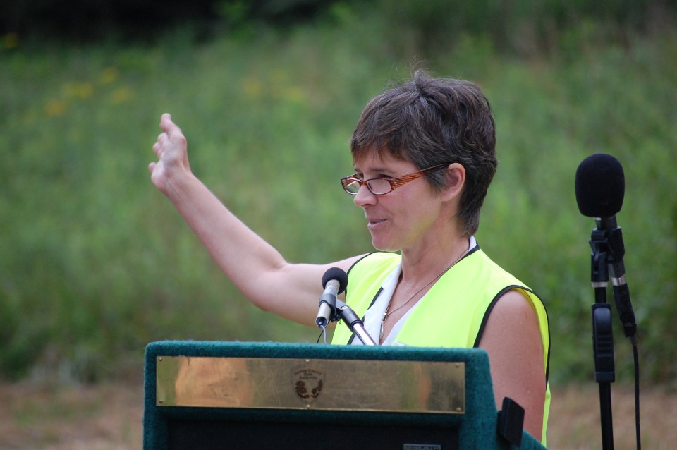 Suzy Foster, Friends of Accotink Creek ← Previous Next → Friends of Accotink Creek representative Suzy Foster spoke passionately about protecting the local environment. Wakefield Run Groundbreaking