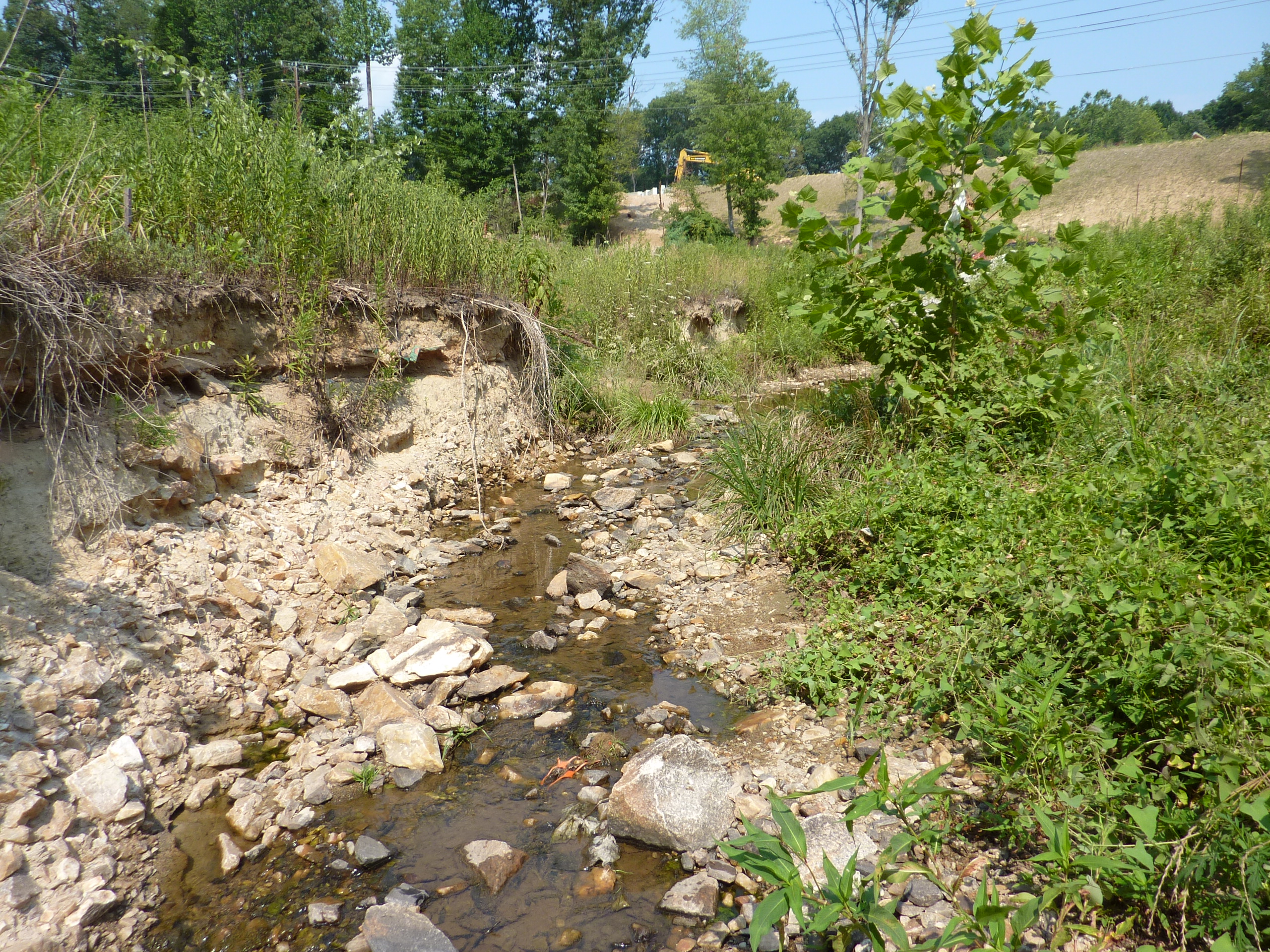 Fast-flowing water has eroded the stream bank.