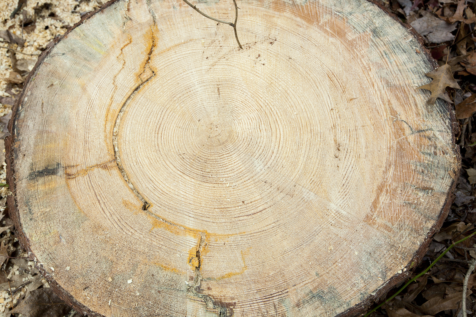 The fallen giant lay where it fell for more than a year until Vickers shared his story with fellow tree commissioner Jerry Peters, who suggested cutting a few “cookies” or cross sections of the tree to be displayed at various county offices. Luckily, the tree had fallen on parkland and hadn’t caused any property damage, so it had remained untouched since the storm. Peters reached out to the Reston Association for permission to do the cutting and the organization was excited to participate. “The Reston Association was delighted to hear that we had a national champion pine on one of our natural area parcels,” said RA Environmental Resource Manager Claudia Thompson-Deahl. “To think that these champion trees have been around to survive development, disease and storms is quite a feat.”
