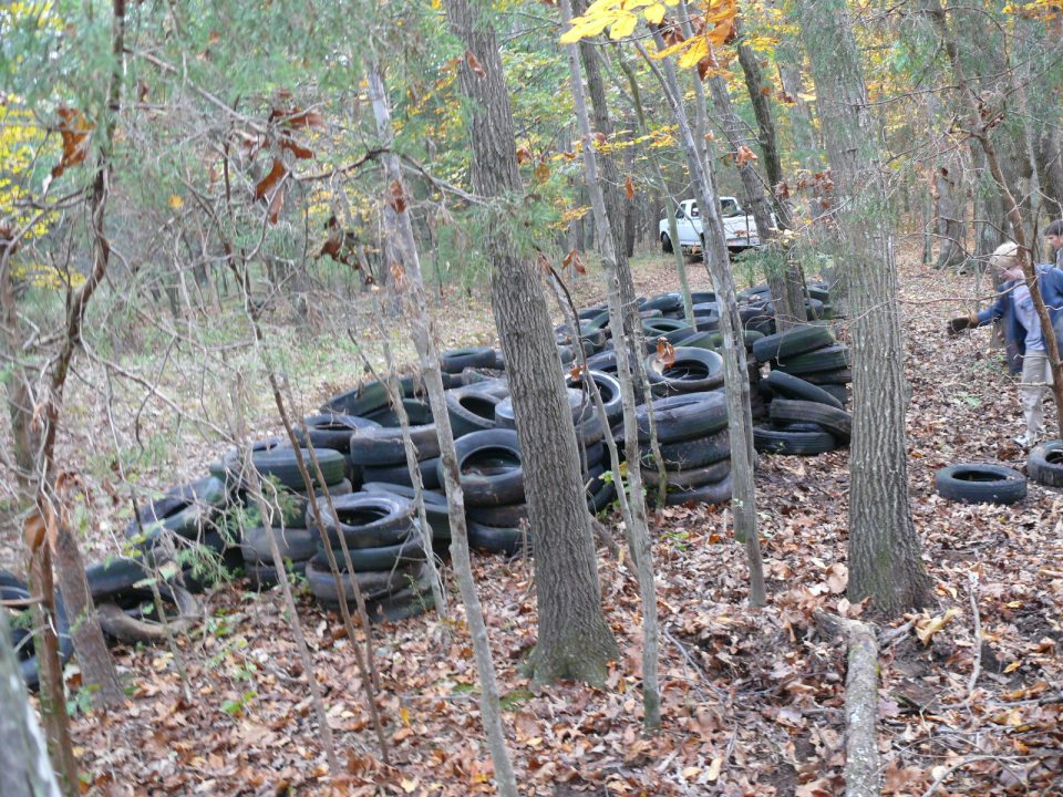 Volunteers stacked tires to be hauled away. Photo by Jenni Freret.