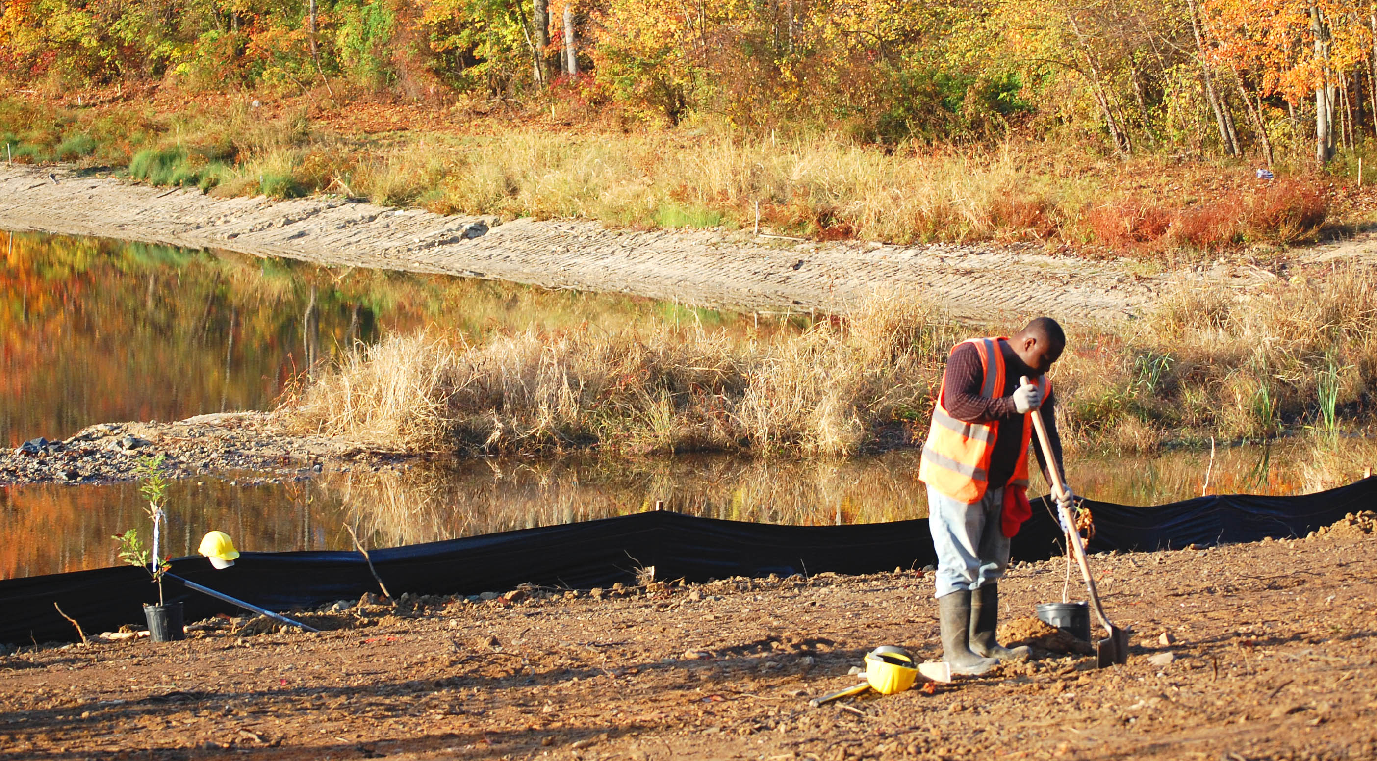 Huntsman Lake ← Previous Next → All that’s left to do at Huntsman Lake is the landscaping. Crews were there this week planting trees and native plants along the shoreline.