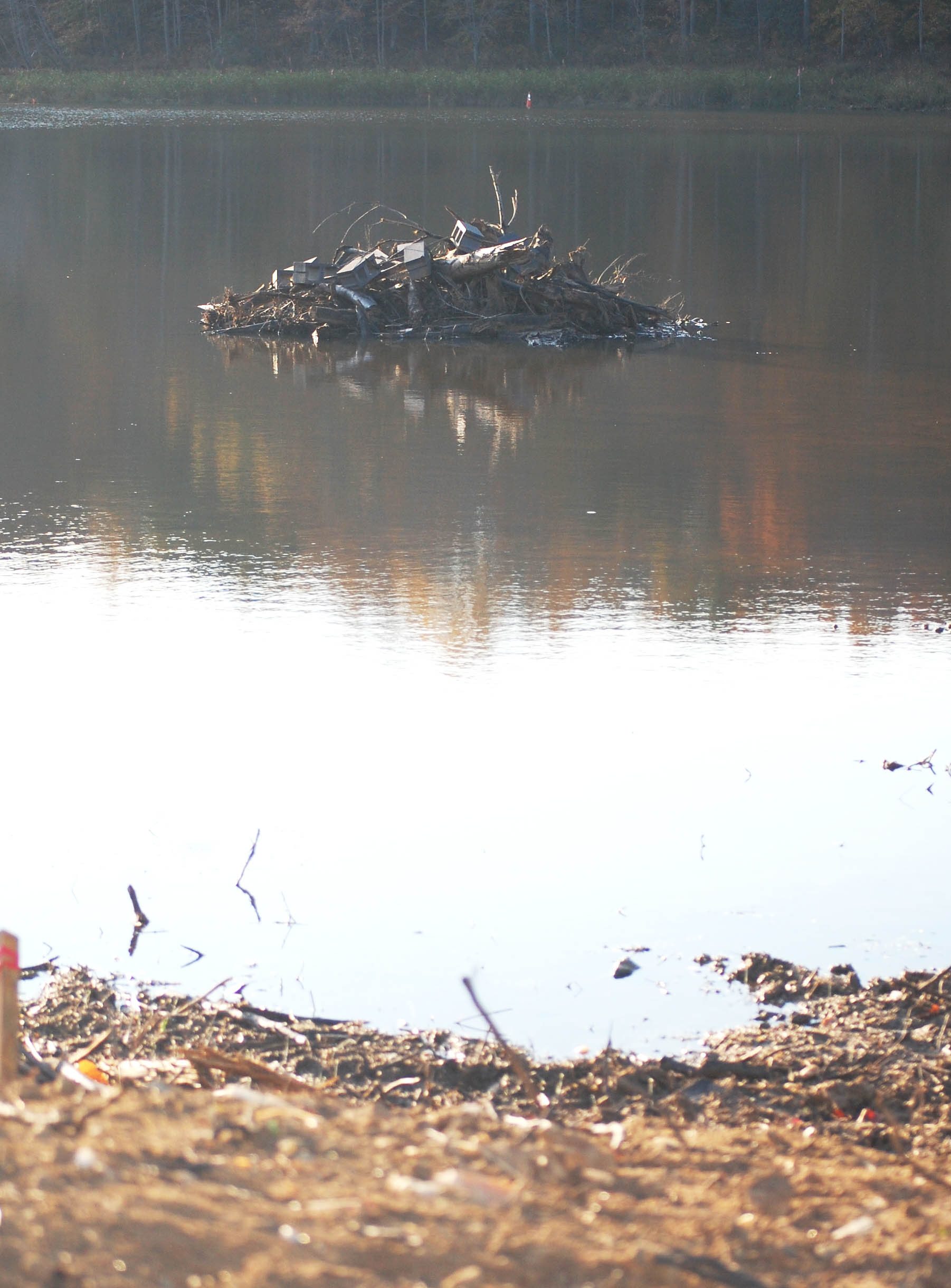 Huntsman Lake ← Previous Next → Work crews have left some debris, stumps and channels in the lake as structure that will attract fish when the lake is restocked.