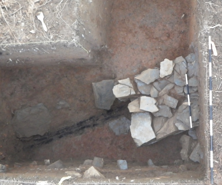 This is where archaeologists put their discoveries in perspective and become interpreters. They have a map of the area from 1782 with a stone foundation marked on it. That foundation was capped and filled with layers which date to the late 18th or early 19th century. The foundation’s building was erected alongside a colonial port town with the same foundation construction as a standing historic building. All of this leads to the conclusion that the stone wall is associated with another domestic dwelling that was used about 1753 to 1840. More information about the function and full size of the structure will need future archaeological research, as only two meters were exposed during a 2012 excavation by CART. A small excavation under the pines, at the intersection of Old Colchester Road and Furnace Road, has answered some questions and, of course, raised more questions about the historic happenings within southern colonial Fairfax County.