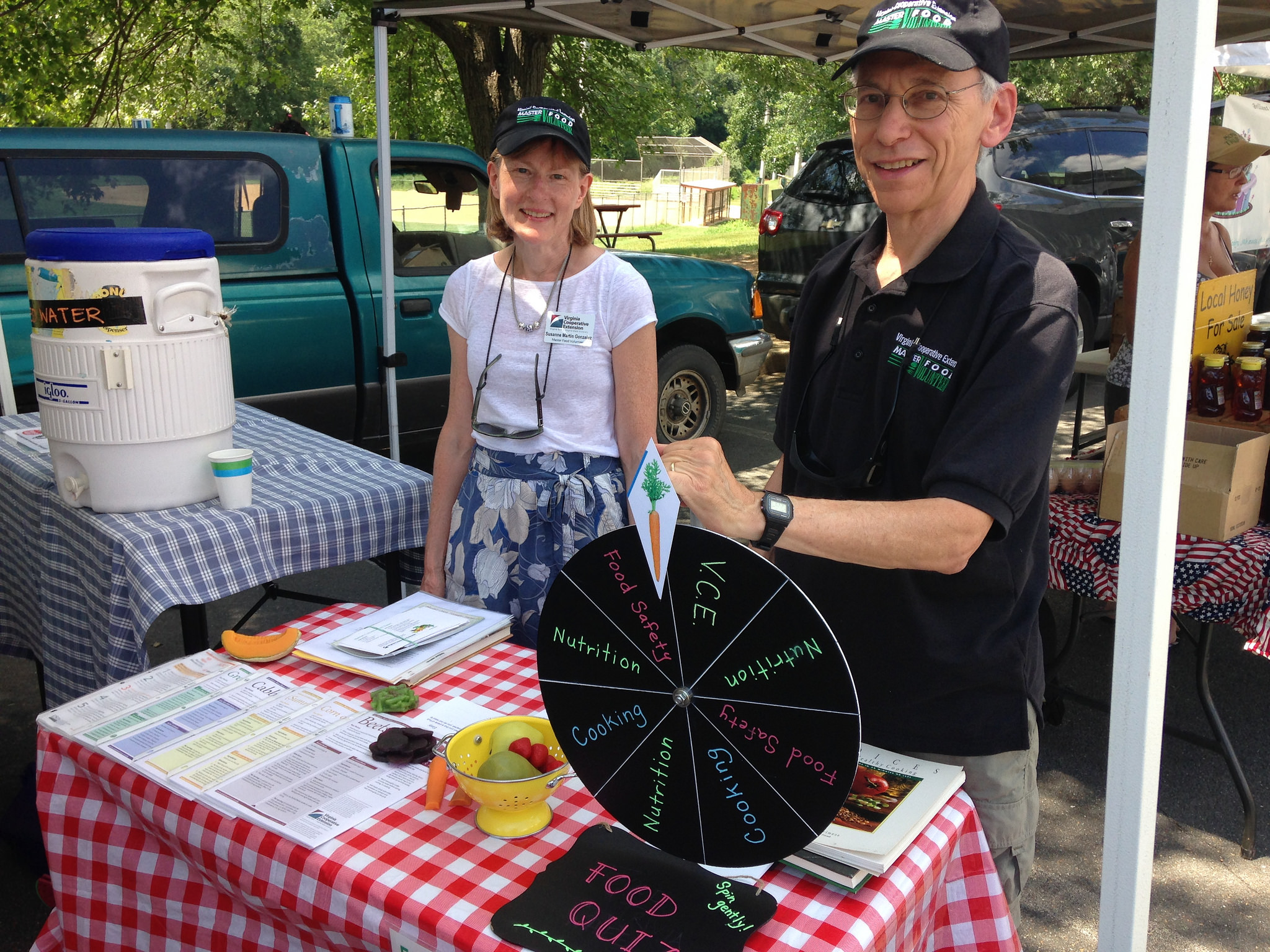 Children enjoyed hula hoops and sidewalk chalk at each market, and they left the pavement decorated with multi-colored fruits, vegetables, and jumbled scribbles. The Virginia Cooperative Extension’s Master Food volunteers delighted kids and adults alike with a food quiz wheel. After answering a trivia question correctly, winners were offered stickers and recipes for cooking fresh produce. At the Herndon market, children gathered for a watermelon seed spitting competition. With fresh watermelons from vendor Mount Olympus, a volunteer gave each of the kids a watermelon slice and carefully marked the farthest ejected seed.
