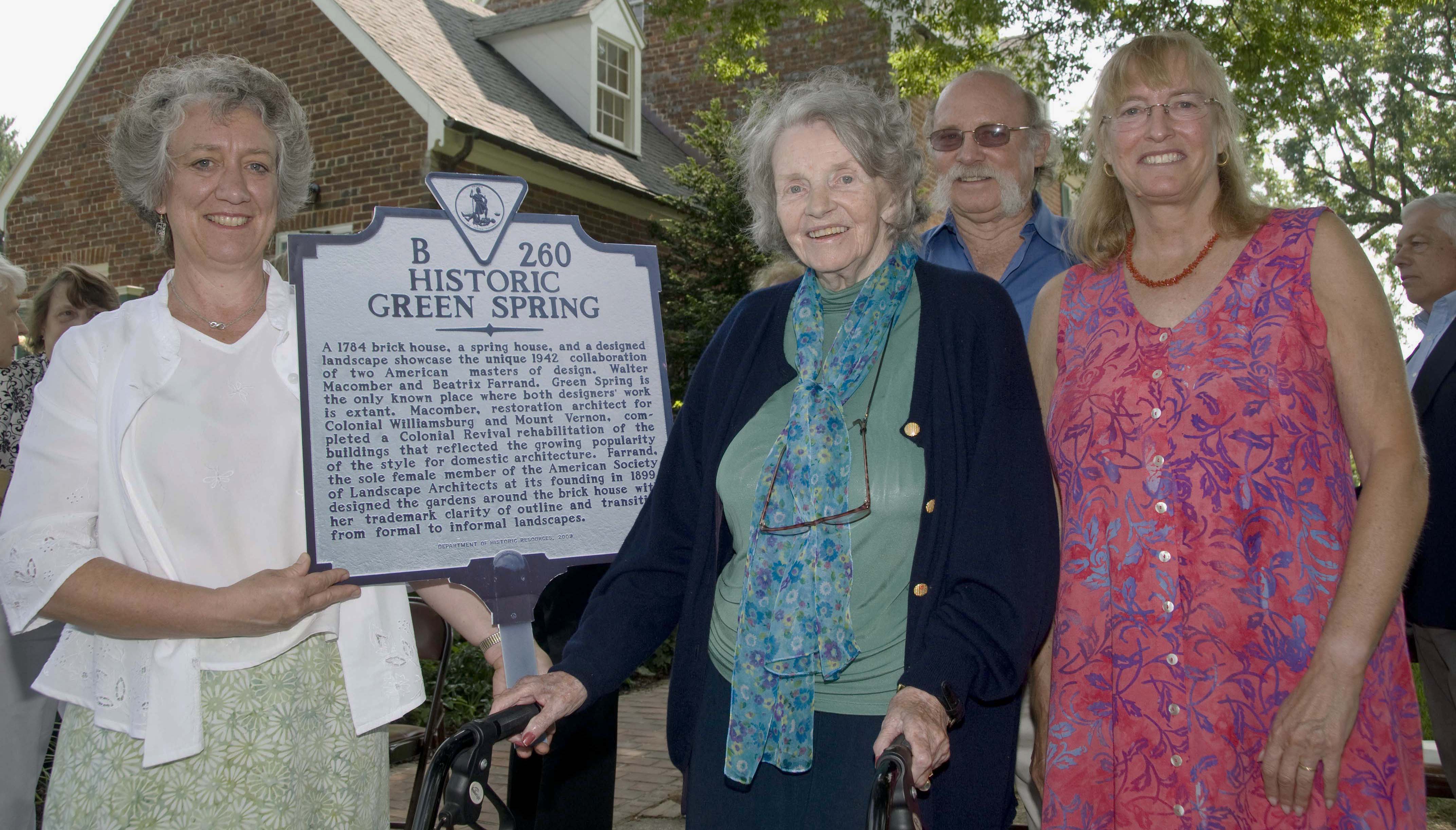At marker dedication on June 12, 2010: Green Spring Gardens Site Manager Mary Olien, Dr. Belinda Straight, her son Michael Straight, Jr., and his wife, Audrey