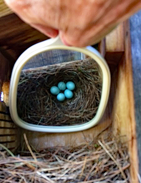 Eggs discovered in bluebird box.