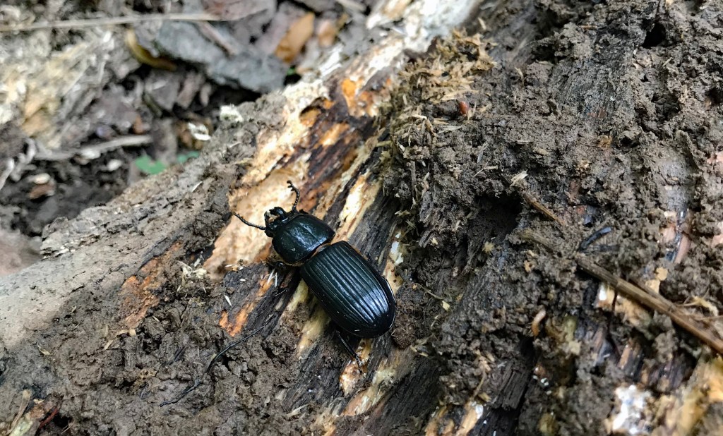 Ben studied Suzi. He retreated to his log and returned with three of his siblings. Suzi dreamed that she was being rocked to sleep as Ben’s family pushed her under the log. When she woke, she was surprised to be surrounded by bess beetles.