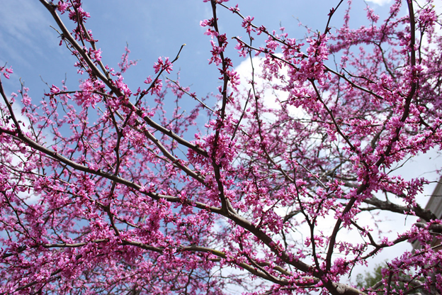 Native trees like flowering dogwood and Eastern redbud sport beautiful flowers in spring. Red maple, sassafras and hickories turn brilliant shades of red, orange and yellow in the fall. Evergreen trees like Eastern red cedar and American holly remain green throughout the winter and provide berries that feed birds.