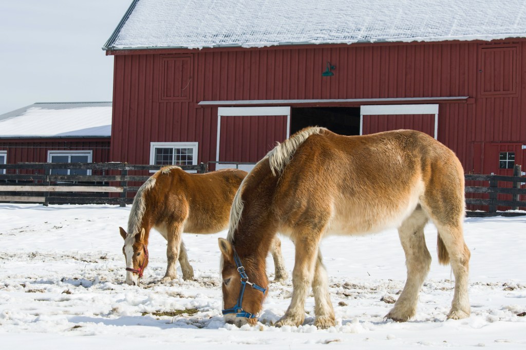 “When it snows, we always want to make sure the animals have access to shelter, whether that’s a shed in their field or a stall in the barn,” said Farmhand Becca Berglie. Typically, when it’s cold and wet, the farm staff provides straw for the pigs to keep them warm and hay in the shelters for the cows, sheep, goats and horses.