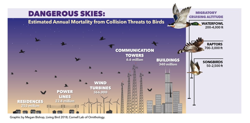 Lights are another part of our built environment causing bird mortality, particularly the external lighting concentrated in urban and suburban areas and along highways.