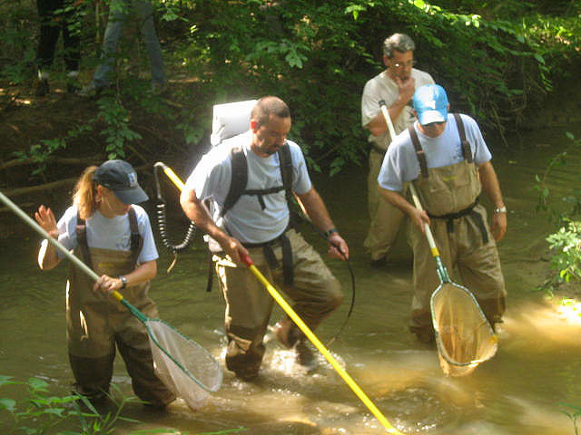 and Dave Lawlor shock, net, and count fish in Dogue Creek at Huntley Meadows Park in 2010. No snakeheads were found during this survey.