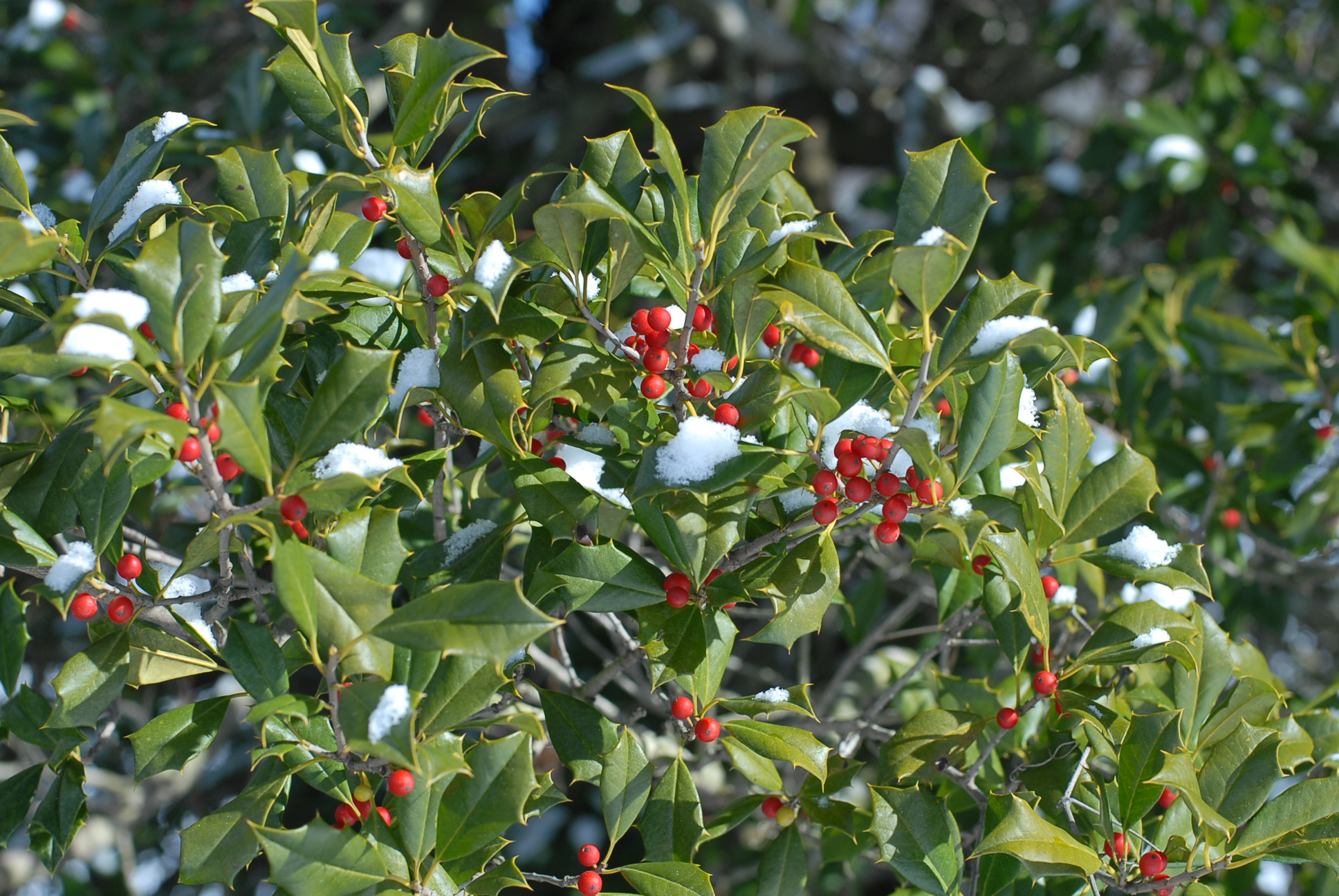 Snow-covered holly berries
